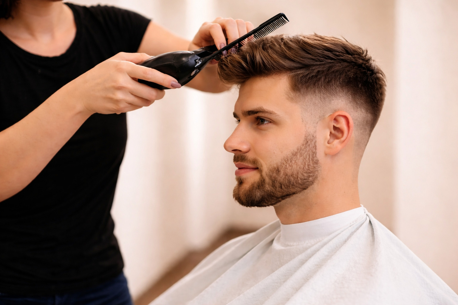 Als Friseur in Nideggen nehmen wir uns Zeit für deine Wünsche. Ob kurzer Business-Schnitt, moderner Fade, strukturierter Look oder zeitlos klassisch – vor jedem Männerhaarschnitt besprechen wir, was du dir vorstellst und welche Frisur deine Gesichtsform und Haarstruktur optimal unterstreicht.